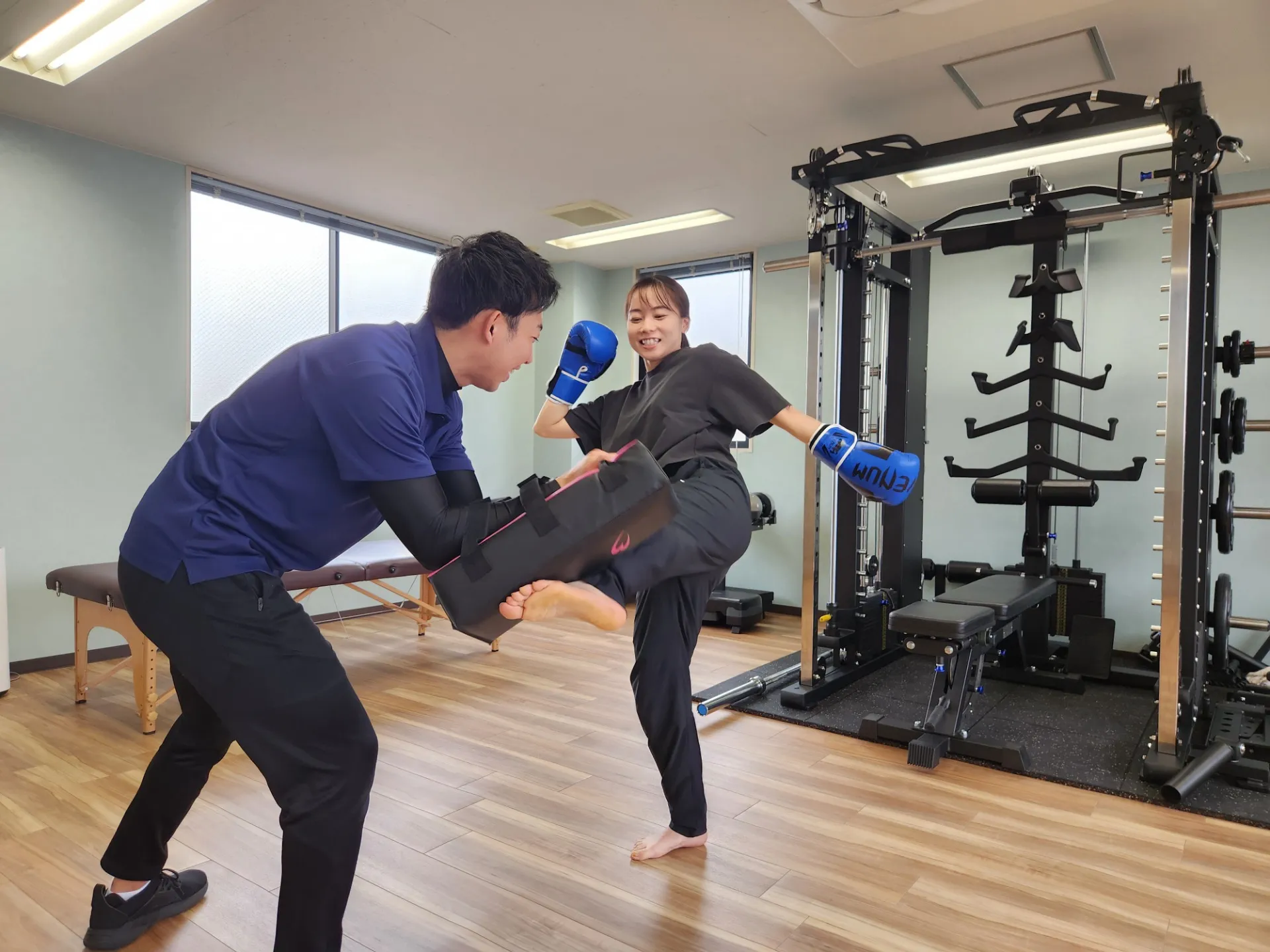 理学療法士の知見を活かした多彩なサービスを提供しています。筋力トレーニングだけでなく、専門的なストレッチや整体的ケア、キックボクシングなど、自在にメニューを構成できるシステムです。「全身をメンテナンスしたい」という方のためのスタンダードコースから、忙しい合間に効率よく身体を整えたい方向けのショートコースまで、ライフスタイルに合わせたプランもご用意しています。